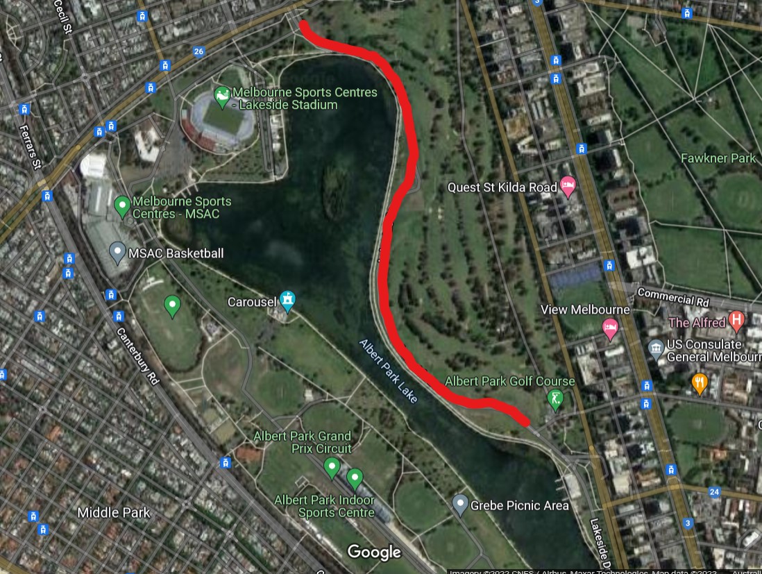 New circuit layout - Albert Rd to Golf Course - 3 km in length