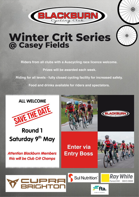 Blackburn Cycling Club: Cupra Brighton Winter Criterium Racing at Casey Fields, will be held throughout the Autumn and Winter season at Casey Fields Criterium circuit.